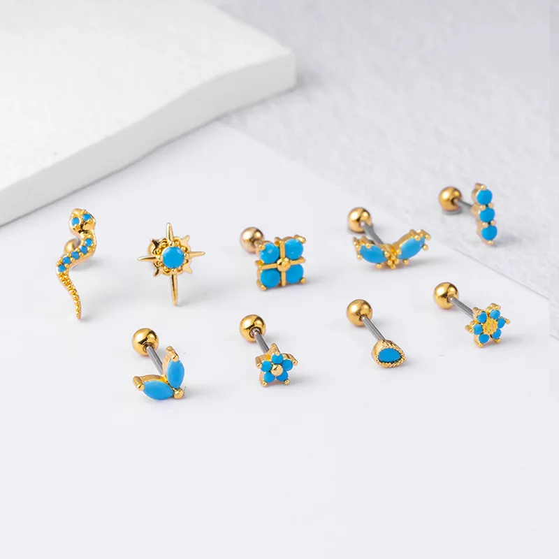 «Piercing Conch Cartilage Studs Earring Stainless Steel Bohemia Style Blue Crystal CZ Tragus Earbone Stud Lobe Piercing Jewelry» по лучшей цене на рынке! Всего за 5$ (475рублей)