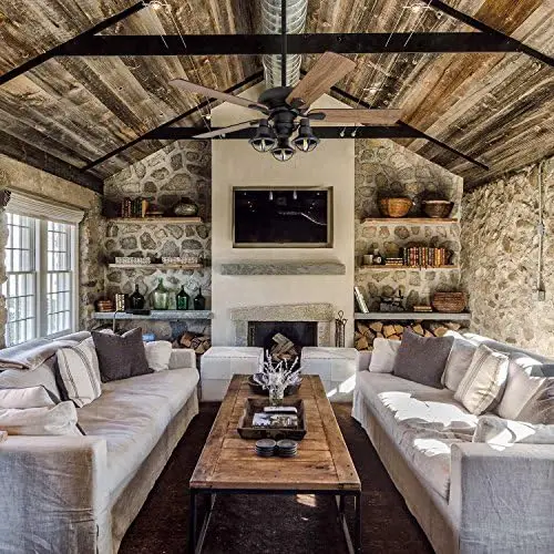 "Piercy, 42 Inch Farmhouse LED Ceiling Fan with Light, Remote Control, Three Mounting Options, 5 Dual Finish Blades, Reversible M" * Buy Now With Free Shipping Just For $95
