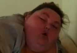 Fat guy pokryte żywności pieprzy ładna dziewczyna z jego mały dick