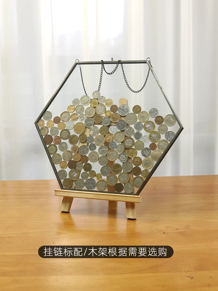 tMyoYedyqHere you can buy Piggy Bank Hexagonal Coin Storage Display Metal Picture Frame Glass Transparent Wall Hanging Decoration Coin Retro Picture Frame with free delivery to your post office.