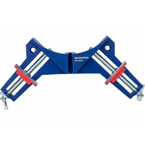 La pince d'angle WORKPRO 90° WP232043 est utilisée pour le serrage et la fixation de pièces lors de la réalisation de divers travaux de menuiserie et de plomberie. L'outil est fabriqué en alliage d'aluminium de haute qualité, ce qui le rend solide et durable. La vis galvanisée renforcée assure une fixation sécurisée. La pince permet de serrer à un angle de 90°.
