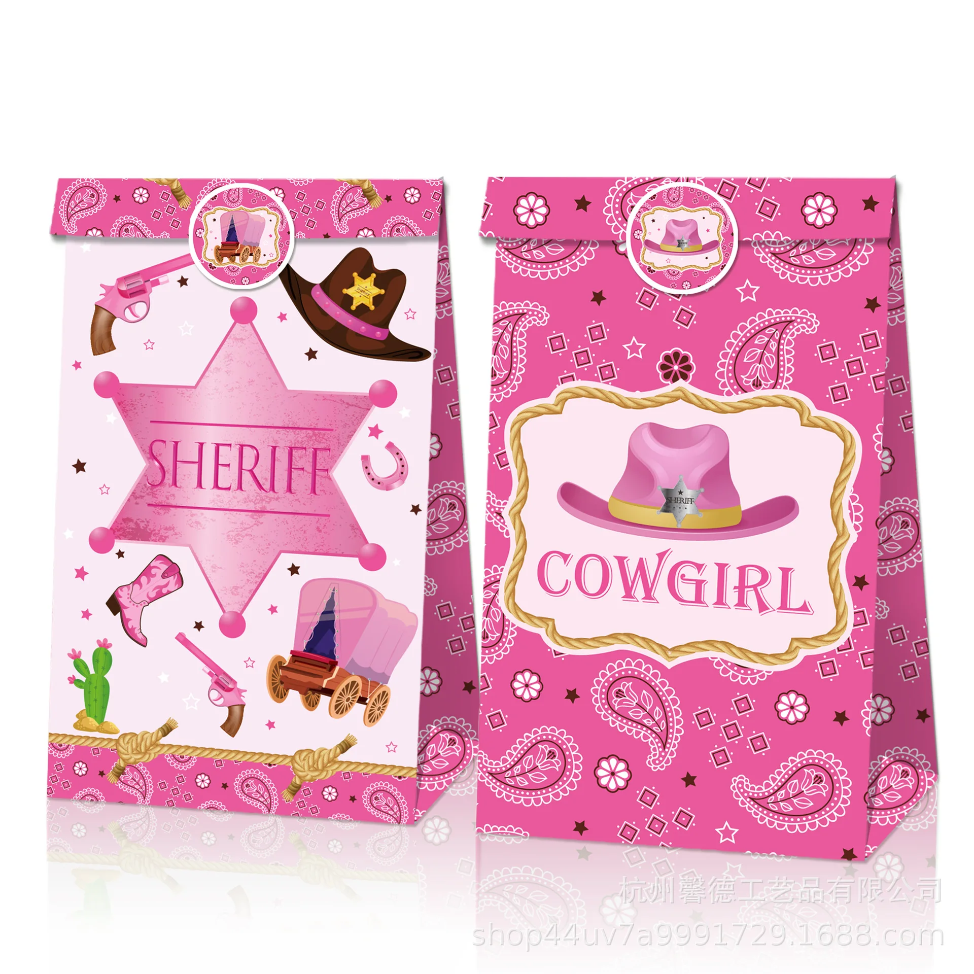 LjaxfKCJGQHere you can buy Pink Girl Western Cowboy Rope Treasure Revolver Candy Paper Bag Birthday Party Cookies Popcorn Box Decoration Baby Shower Gift with free delivery to your post office.