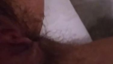 Wife's Hairy Cunt Spread Pink Swollen Clit and Cumshot . . .