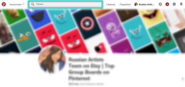 Шаг №1: Найдите на главной странице бизнес-аккаунта Пинтерест, в верхнем правому углу, значок «лупа» . Нажмите на этот значок .