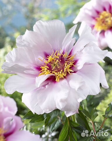 Зацветает пион Cora Louise (Кора Луиза) в апреле-мае, образуя очаровательные крупные цветы бело-розового оттенка с фиолетово-бордовым цветом в основании нежных лепестков, особую изюминку . . .