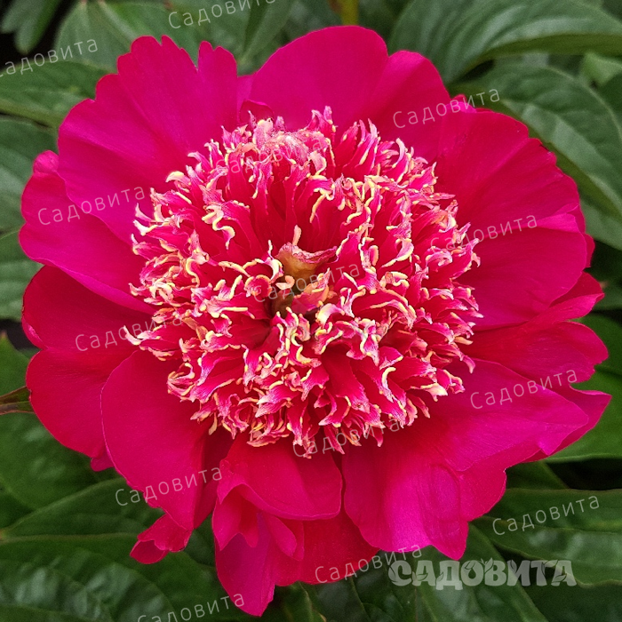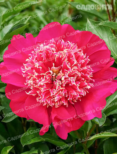 Пион махровый, темно - красный без свекольных оттенков с розовидным центром . Диаметр 18-20 см . Высота 100 см . Стволы прочные, толщиной с палец, не изгибаются . Листья светлые, яркие . . . . Кукус Нест . . .