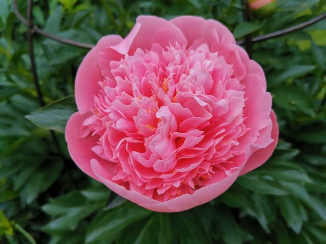 Пион Салмон Глори - это коллекционный гибрид с высотой куста от 75 до 85 см . Стебли довольно толстые и прочные, листовая пластина широкая, окрашена в насыщенный зеленый оттенок .