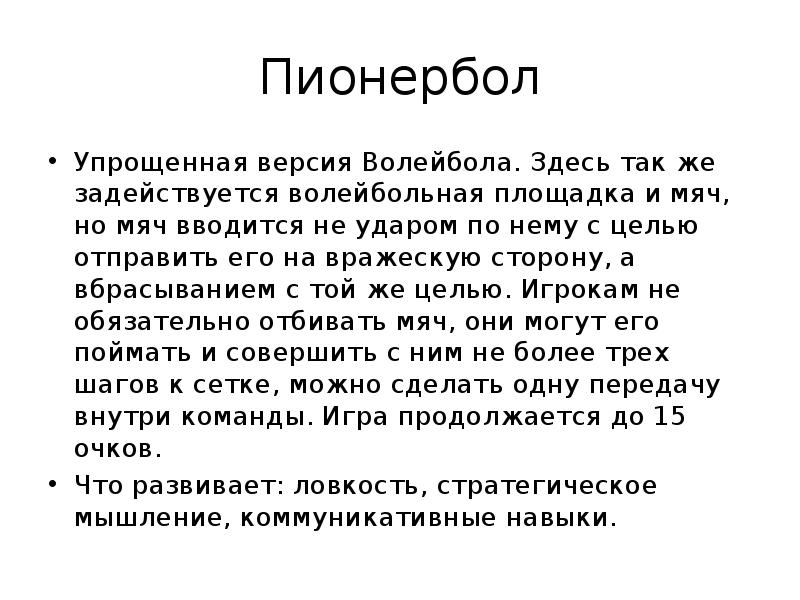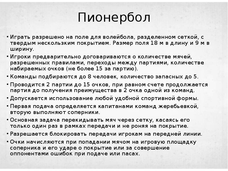 Пионербол кратко
