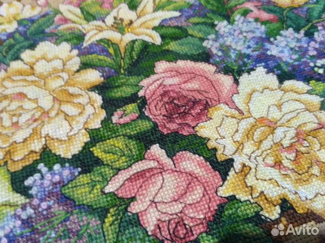Схема для вышивки панно - пионы и дельфиниумы . В работе используются нити зеленого, розового, сиреневого, фиолетового, коричневого, серого, бежевого, голубого оттенков, канва белого цвета . Используемые типы стежков: полный крест, половинный стежок, французский узел, обратный стежок . Готовое панно можно оформить в самостоятельную картину в раме .