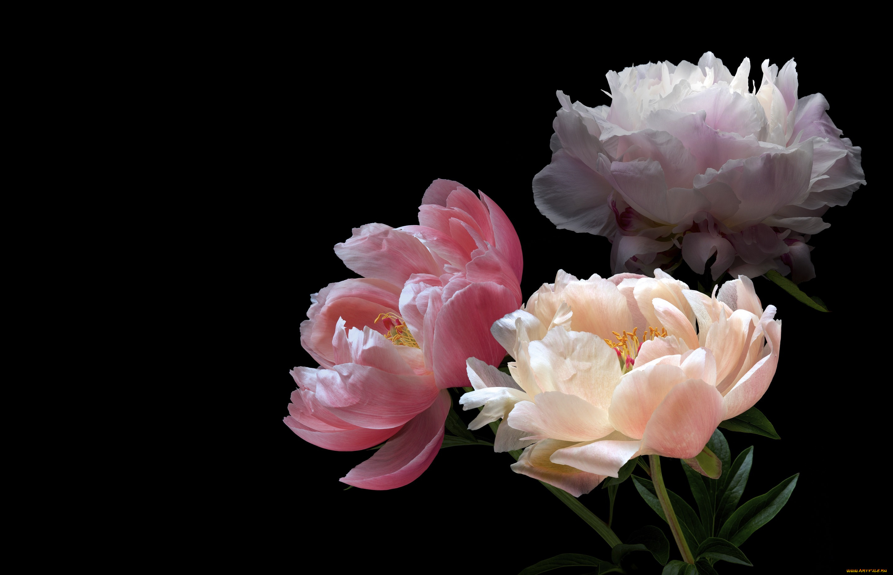 Пионы На Черном Фоне Фото