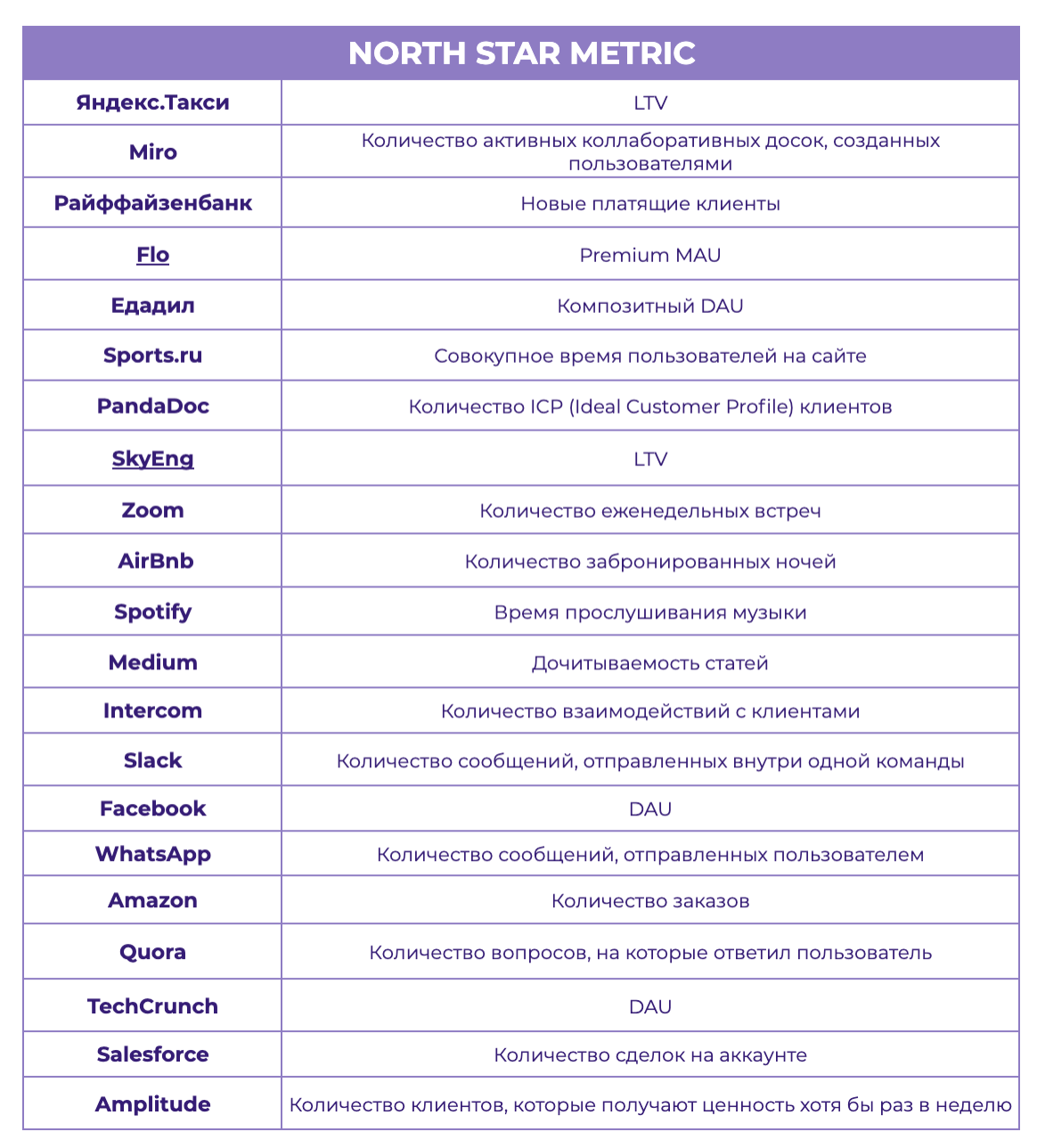 Какие North Star метрики могут быть у разных компаний