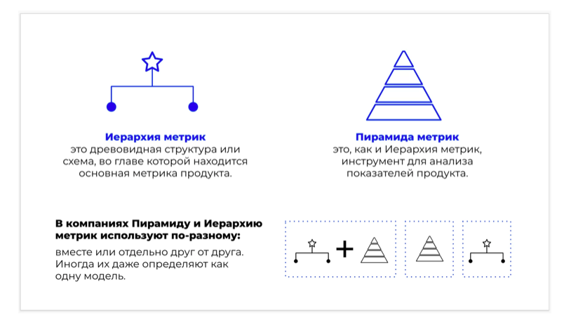 В компаниях Пирамиду и Иерархию метрик используют по-разному: вместе или отдельно друг от друга. Иногда их даже определяют как одну модель.