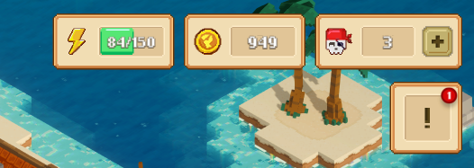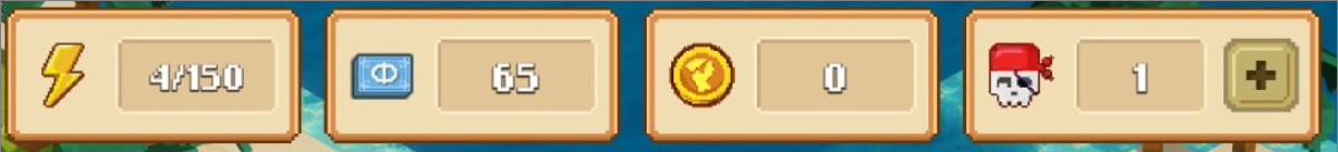 - Энергия ( необходима для квестов, восстанавливается 1 единица в 10 минут реального времени) На аккаунте вне зависимости от количества пиратов на данный момент 150 EP является максимумом.