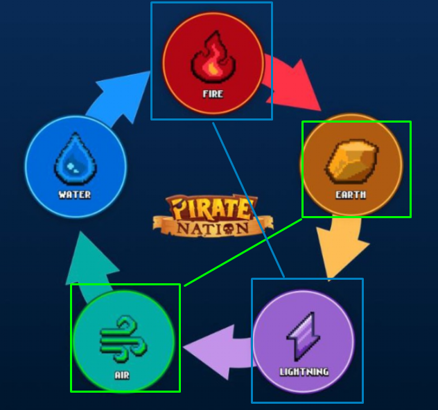 - Пират Воды атакует Пирата Огня - P1 нанесет ( X+25% ) урона