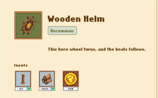 рулевая стойка , 25 дерева и 250 золота и штурвал твой. В бою дает дополнительную карту :