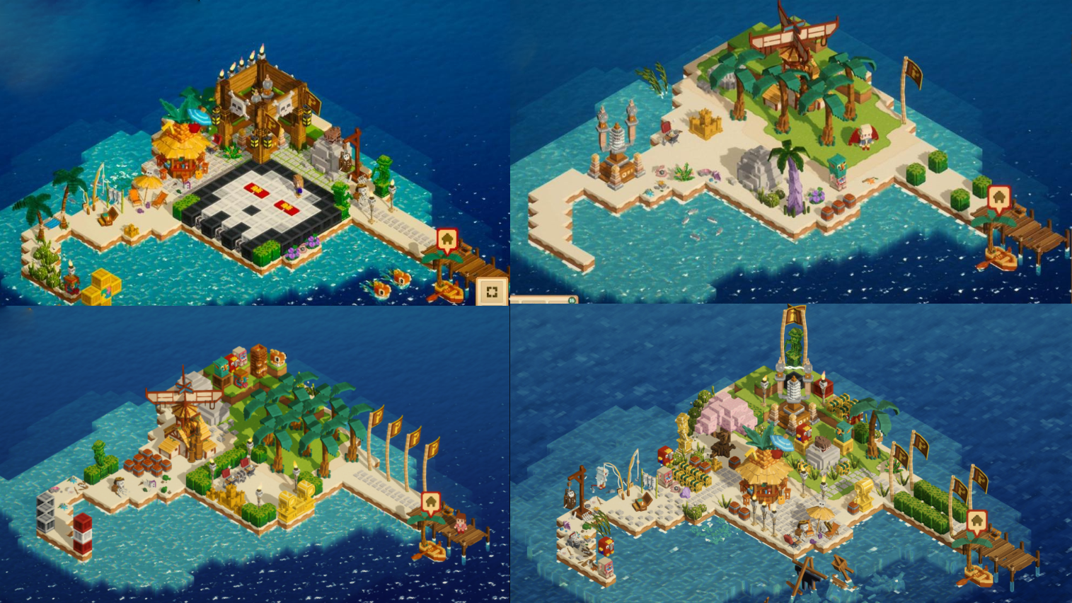 Земля пока что имеет практически полностью декоративный характер. Утилити есть всего лишь у нескольких построек, все остальное - чистая косметика. Но согласитесь, приятно выставить себе на остров барбекю рядом с бочкой динамита, или же спрятать награбленные сундуки где ни будь в кустах. В дискорде проекта есть отдельная ветка, где игроки делятся своими островами, некоторые выглядят действительно потрясно.