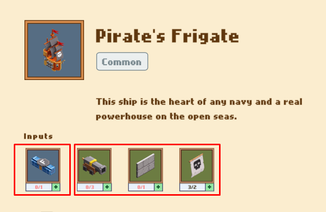 На данном этапе игры рецепты крафта Шхуны/Галеона/Фрегата мало чем отличаются друг от друга. Но сами корабли сильно разнятся по ХП и слотам для апгейда. Об этом можно прочесть в первой статье более подробно.