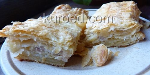 Пирог на слоеном тесте с курицей