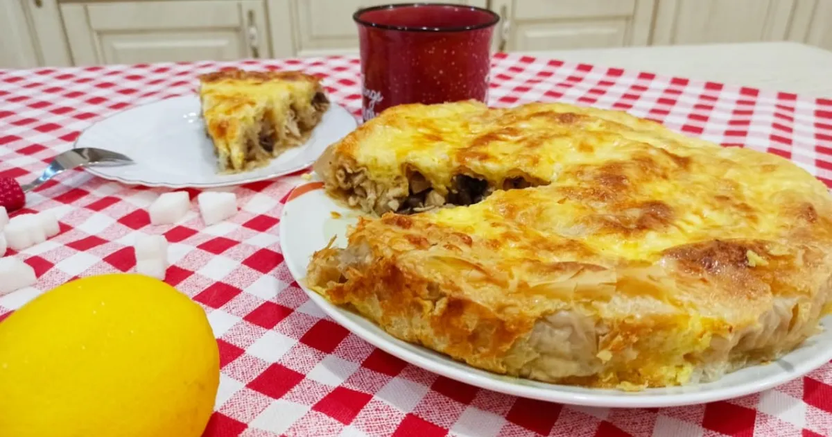Пирог с грибами из теста фило
