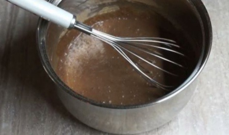 7. Ставим сотейник на плиту. На среднем огне, при постоянном помешивании, доводим смесь до кипения. Снимаем сотейник с огня и даем остыть.