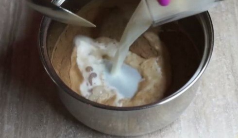 4. В сотейник вливаем молоко.