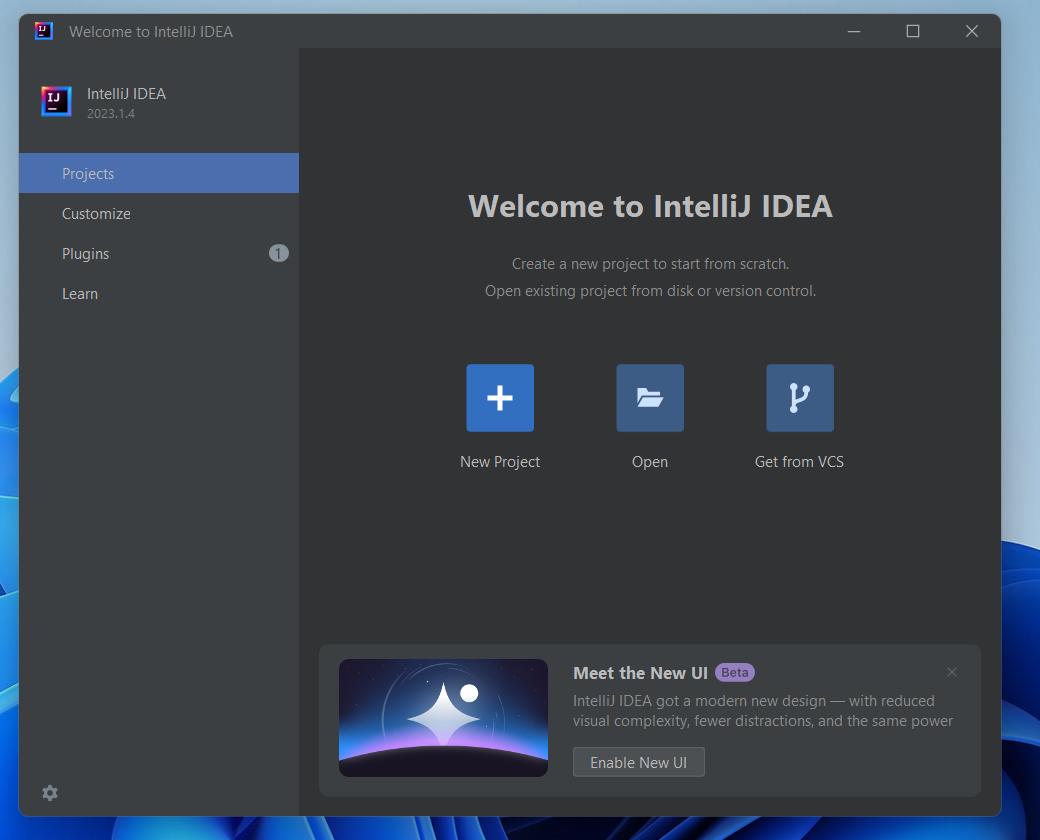 Нажимаем New Project для создания нового проекта.