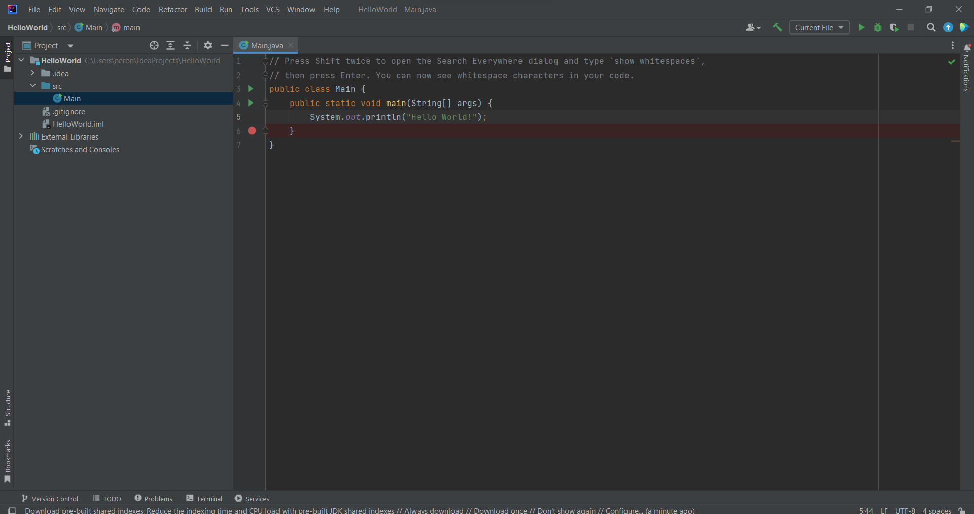 Проект уже будем содержать один class Main, с каким-то кодом.