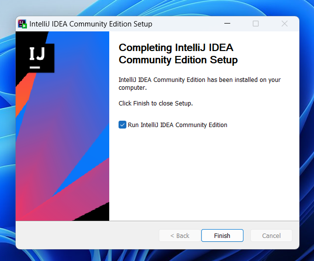 Выбираем Run IntelliJ IDEA Commutiny Edition и нажимаем Finish.