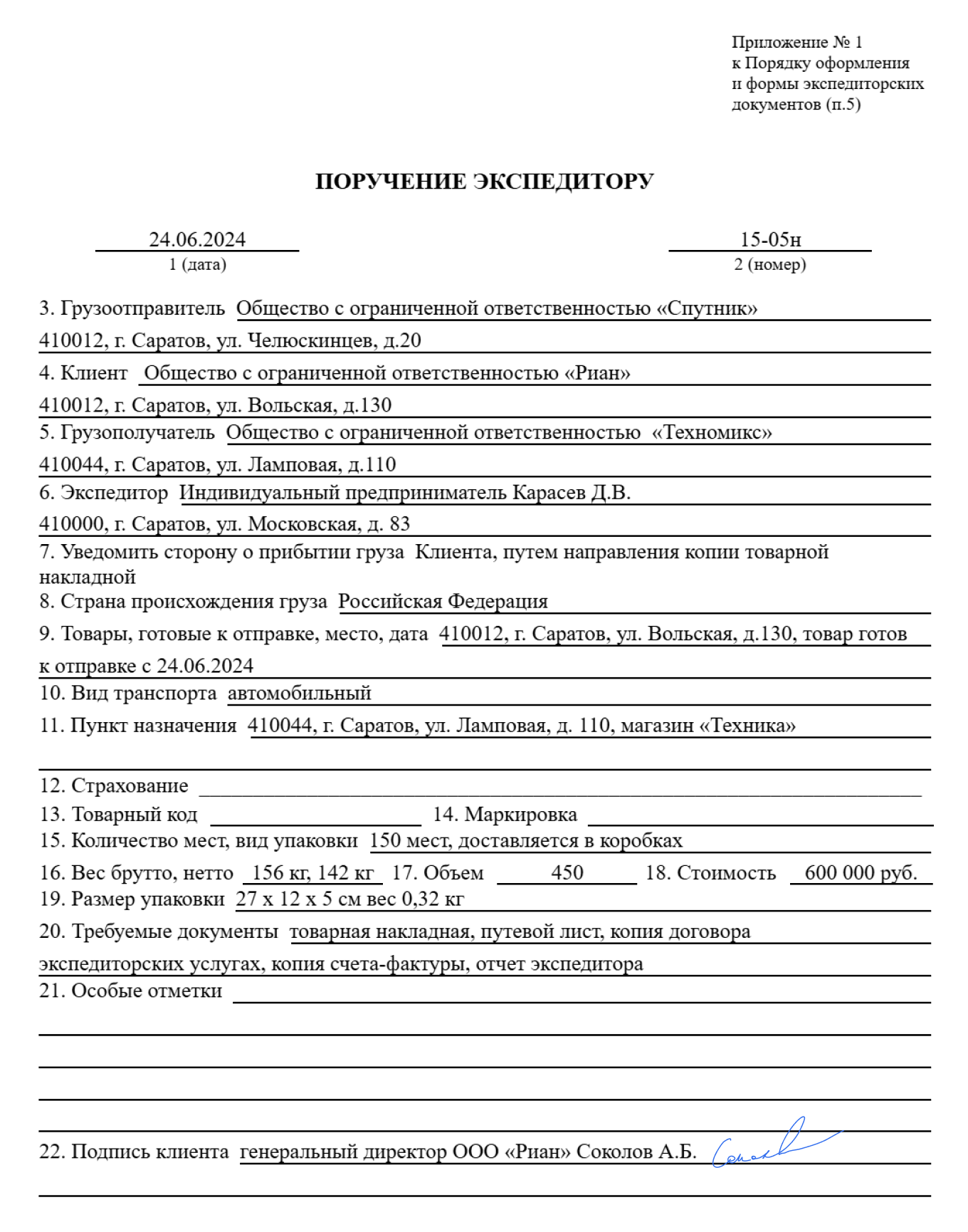 Письменное поручение образец