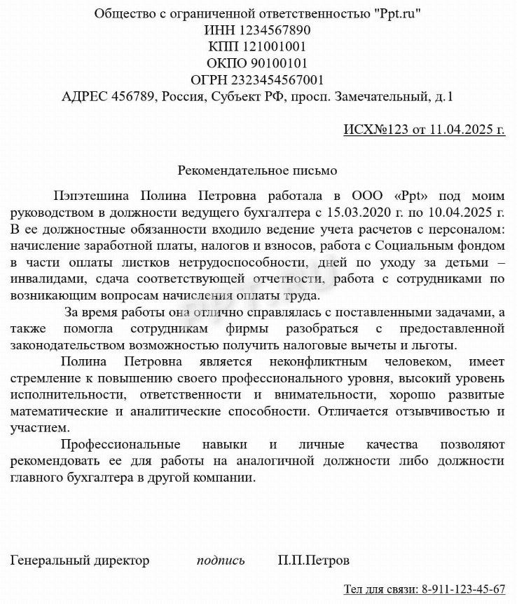 Письмо главного специалиста