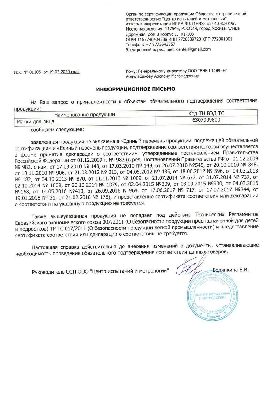 Письмо о сертификации образец