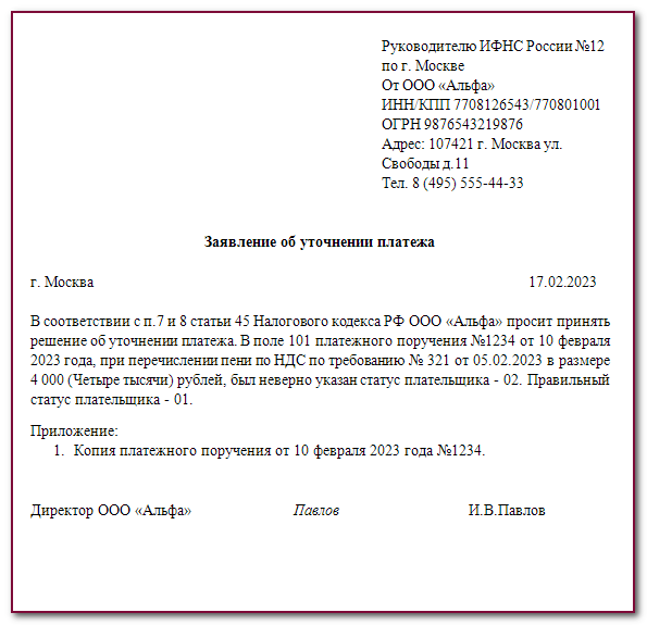 Письмо об оплате ндс