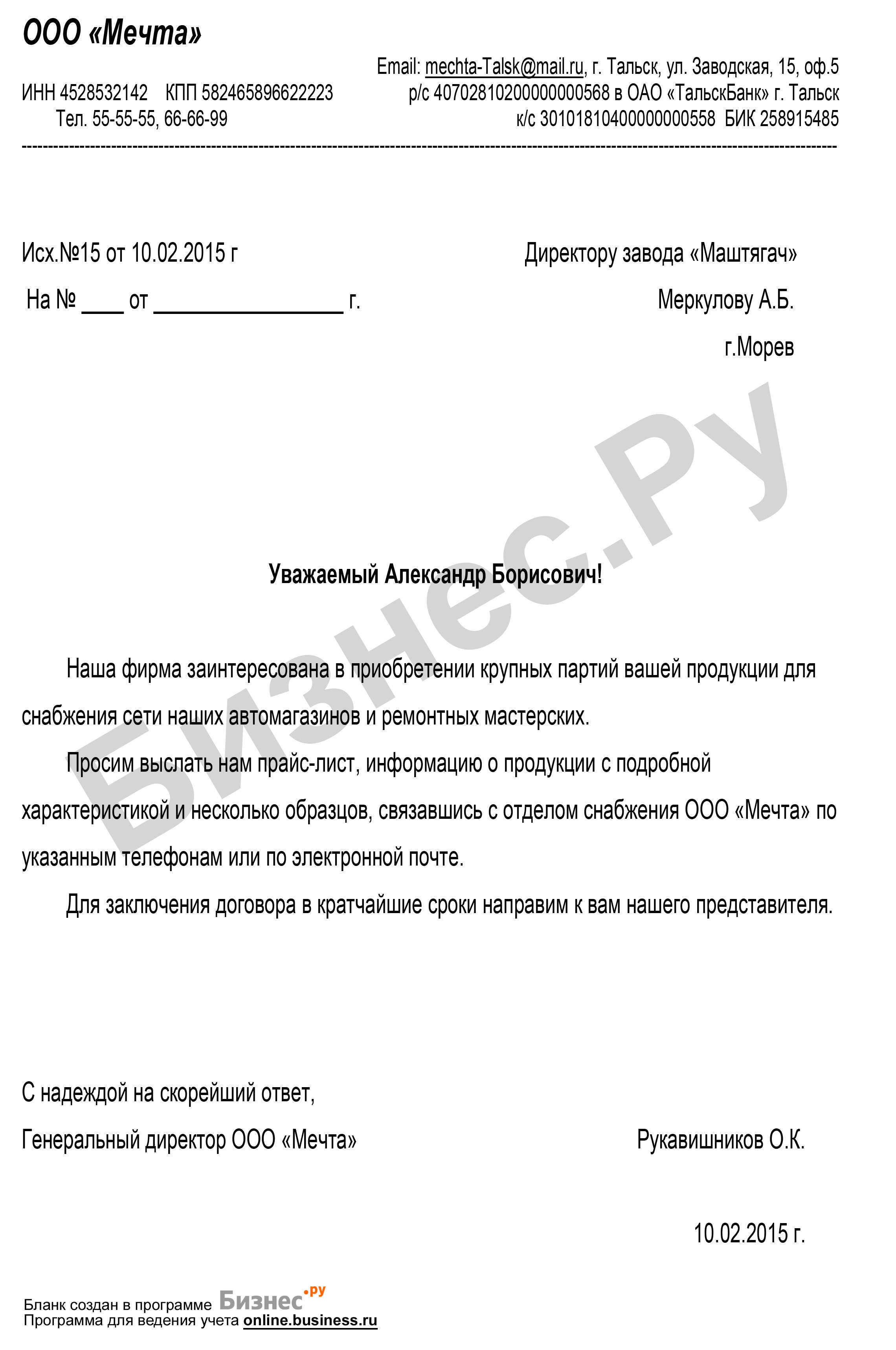 Письмо предложение как оформить