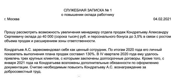 Письмо руководителю о повышении зарплаты