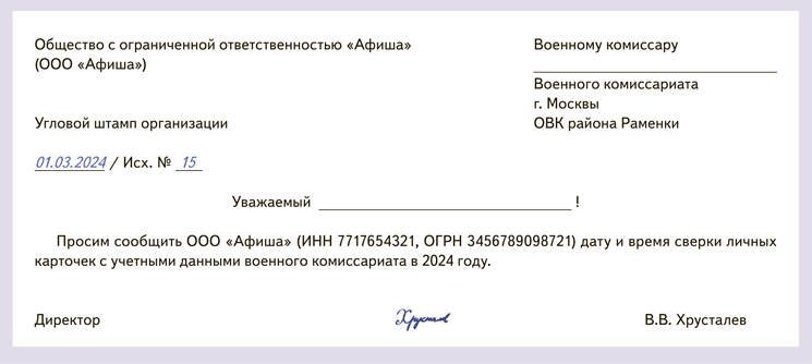 Письмо сверка с военкоматом