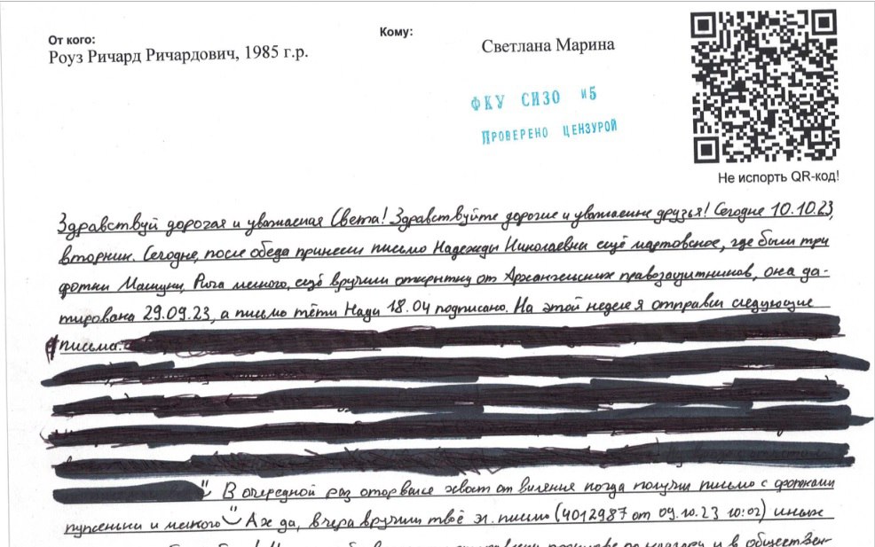 Письмо заключенному текст