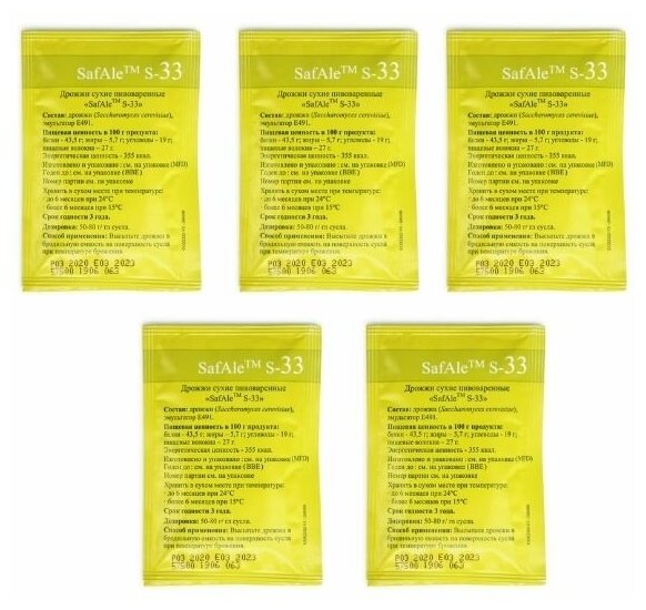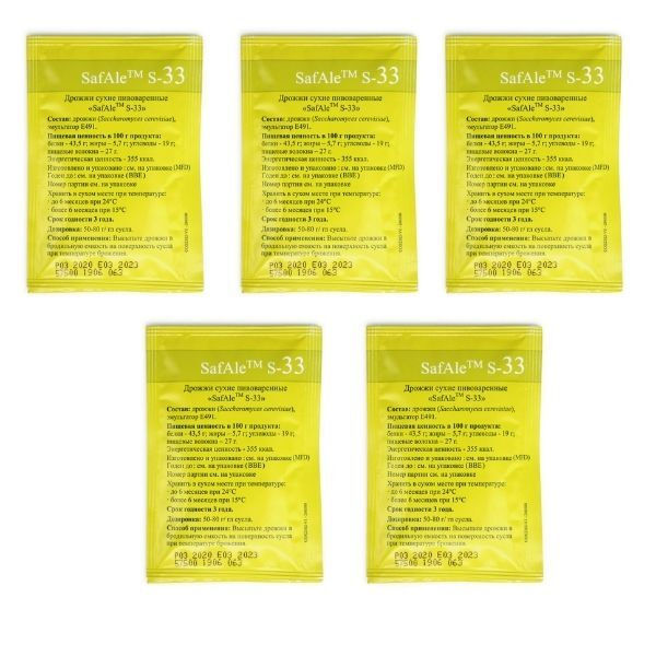 Пивные сухие дрожжи SAFBREW S-33 500 gr . Пивные сухие дрожжи общего назначения, широко используемые с хорошим ароматом . Осадок: средний . Заключительная плотность: высокая . Температура брожения: 15-24 . . .