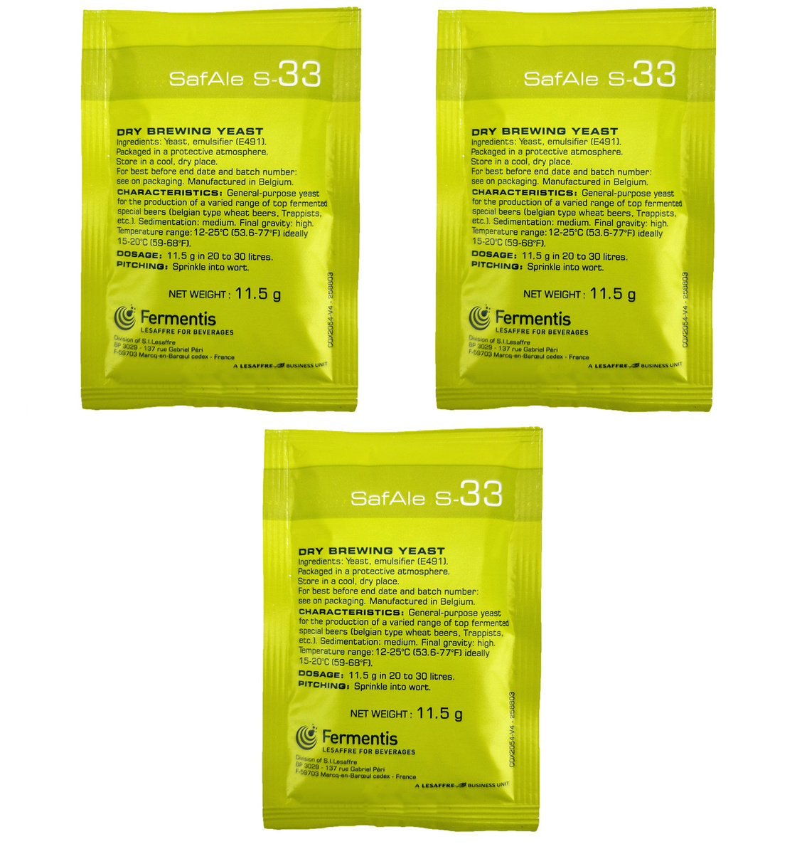 Дрожжи пивные "Fermentis" Safbrew S-33, 11,5 гр
