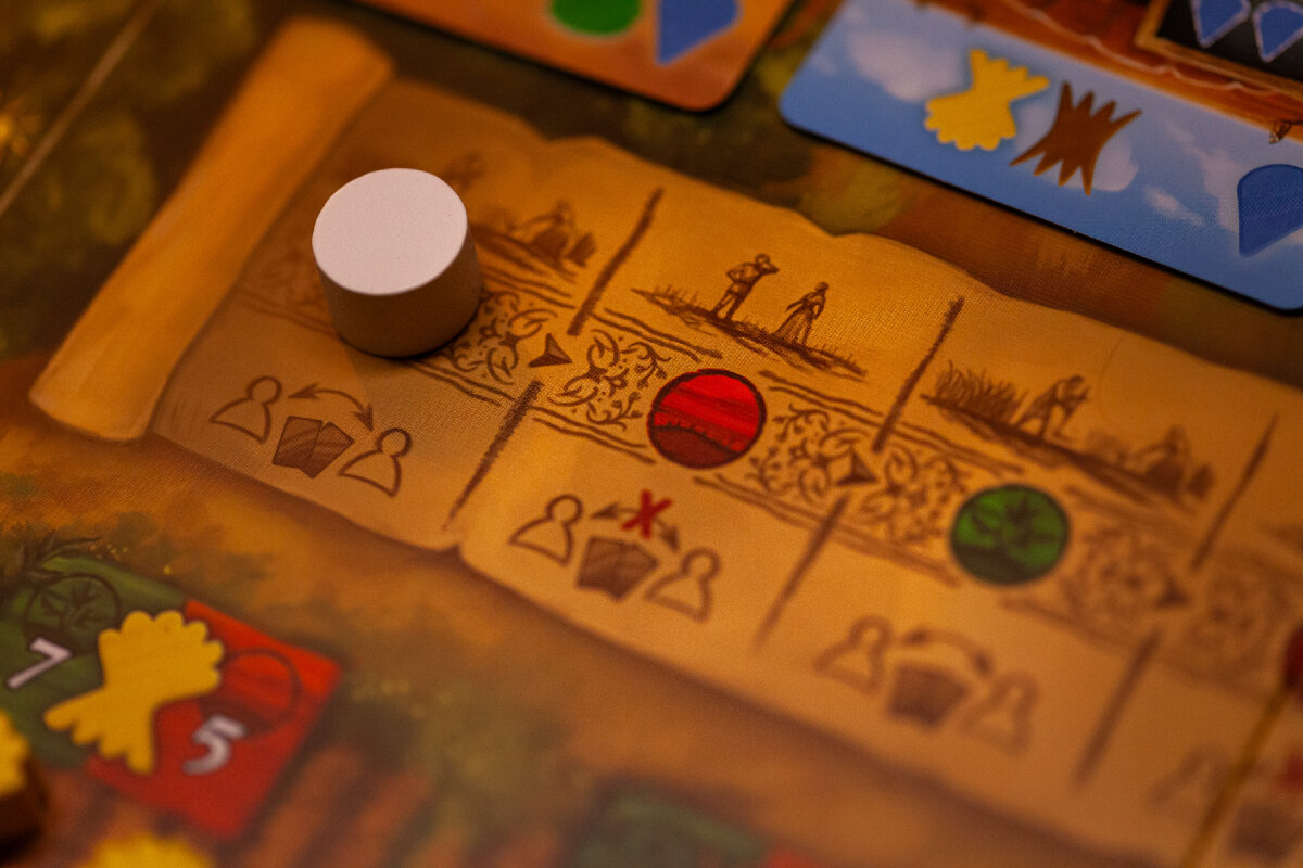 Первая партия получилась достаточно пустой, т.к. я не сразу понял связки урожайных и неурожайных годов и ценность действий. Но вот последующие были достаточно насыщенными и интересными. Микс механик работает классно, партии непохожи друг на друга и игра не ощущается рандомной.