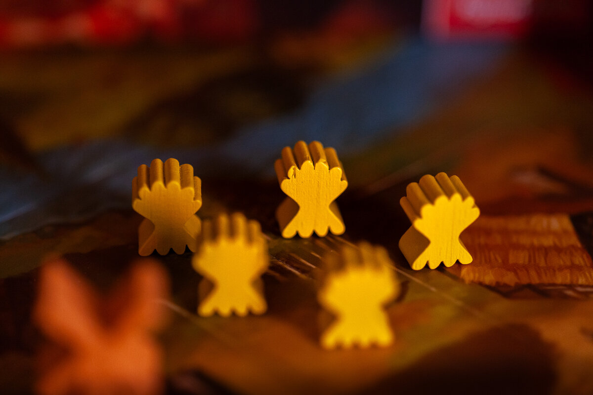 Карту положили - ресурсы собрали. Следующая карта играется поверх предыдущей, и вы кладете её так, чтобы ресурсы первой карты все еще были видны. Затем вы собираете все ресурсы, изображенные на новой карте и также любые ресурсы, которые были на ранее сыгранных картах, если они повторяют ресурс на новой карте. Звучит путано, но в игре это кристально понятно.
