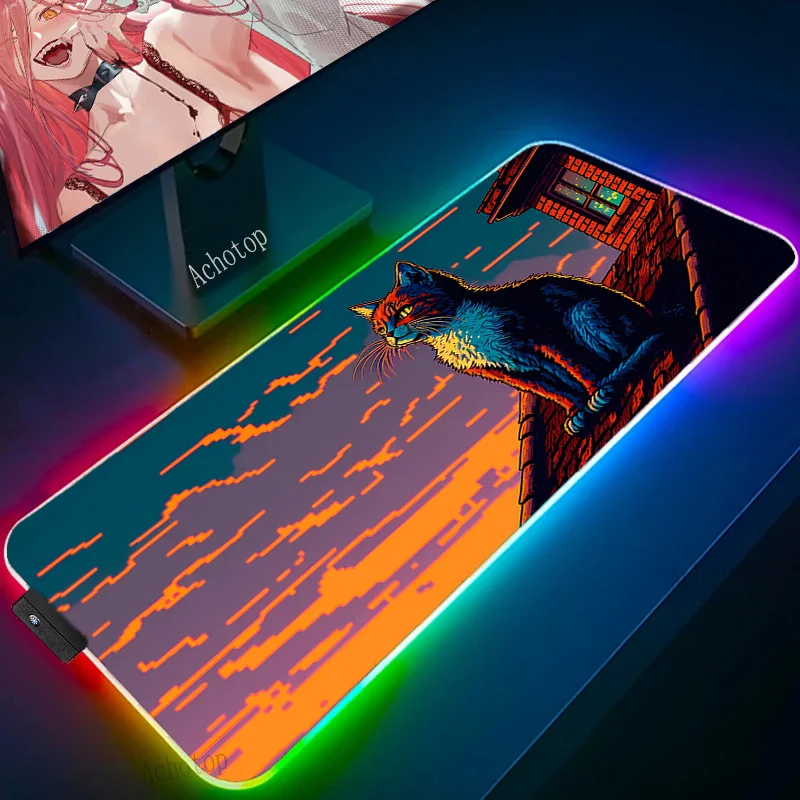 "Pixel Cat RGB Mouse Pad Gaming Mousepad Gamer Large Desk Backlit Mat Computer Led Carpet Surface Mause Ped XXL Deskpad Protector" * Buy Now With Free Shipping Just For $35
