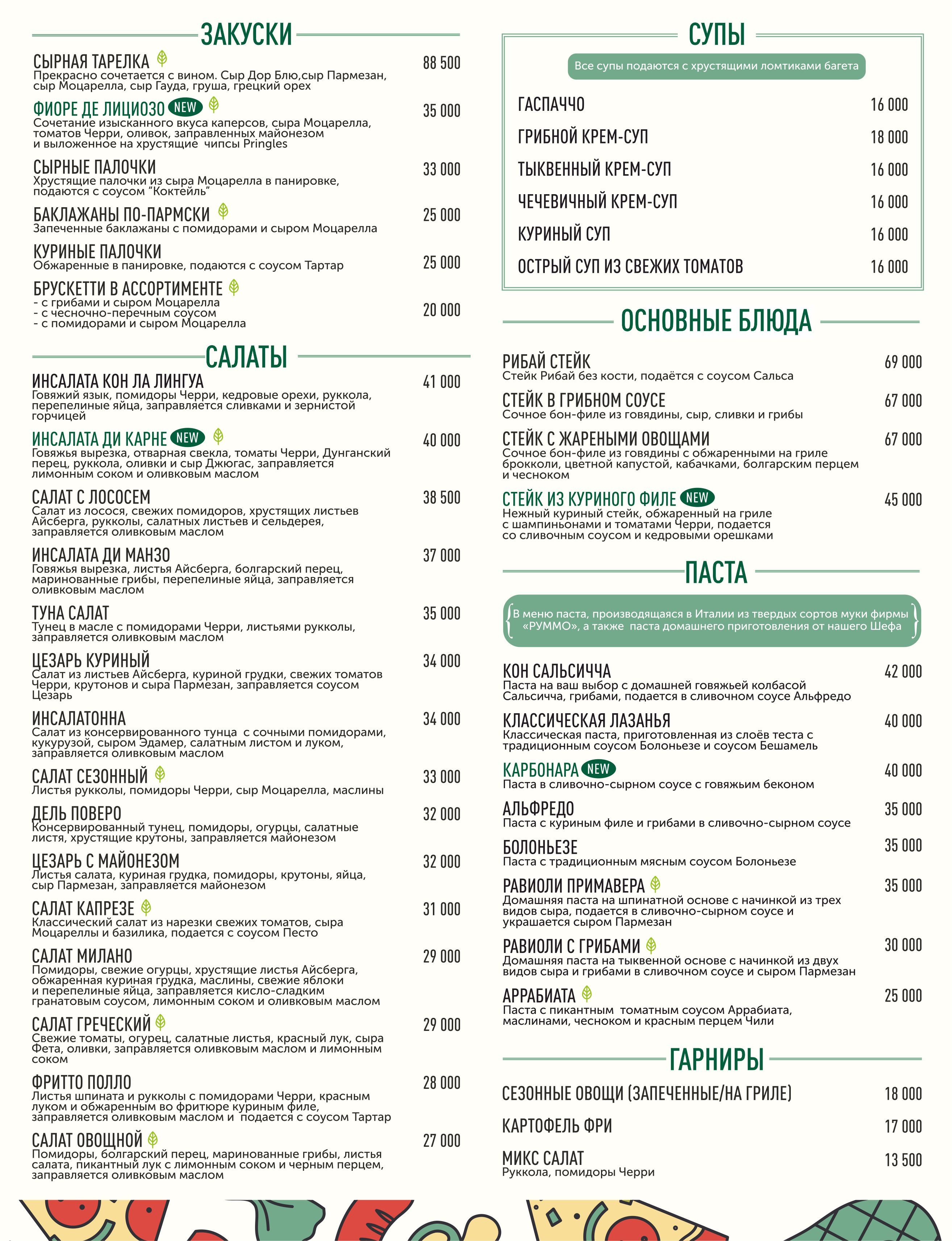 English version of the menu: