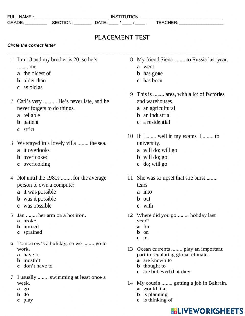 Placement test for kids