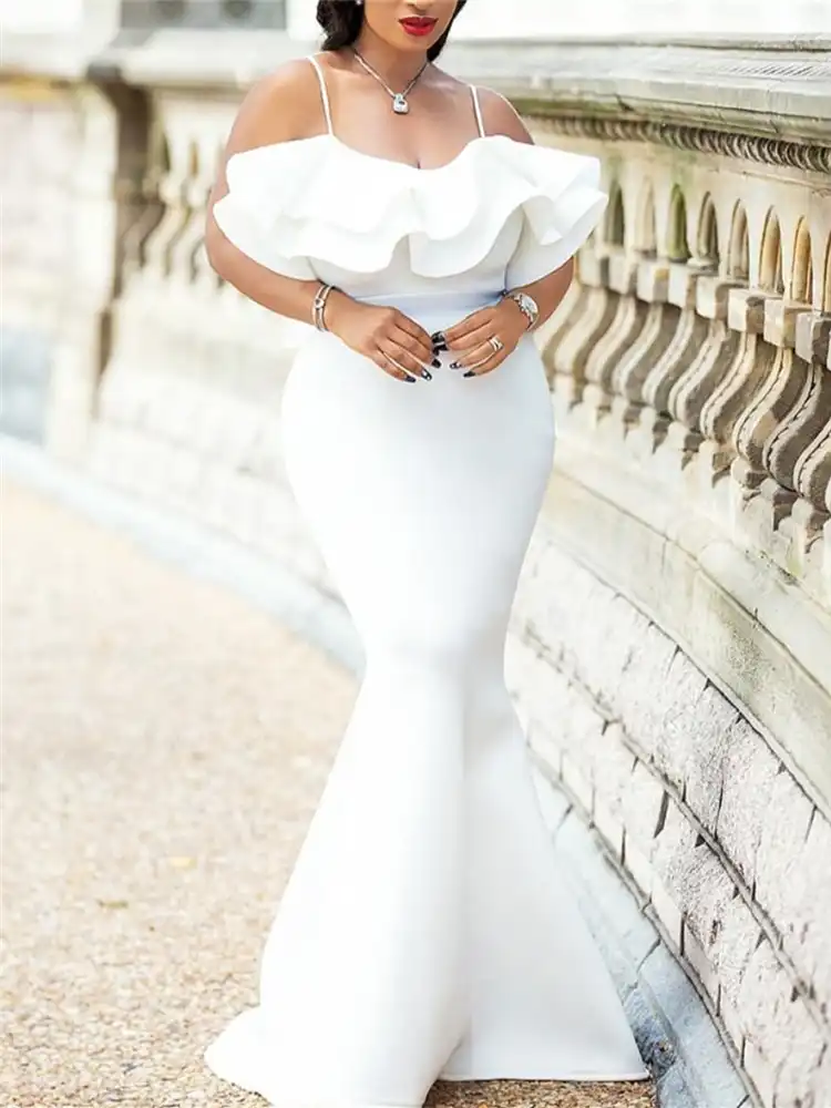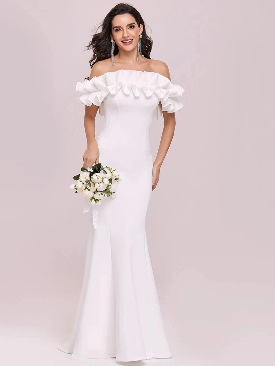 Plain Maxi Fishtail Wholesale Wedding Dress with Ruffle . . .
