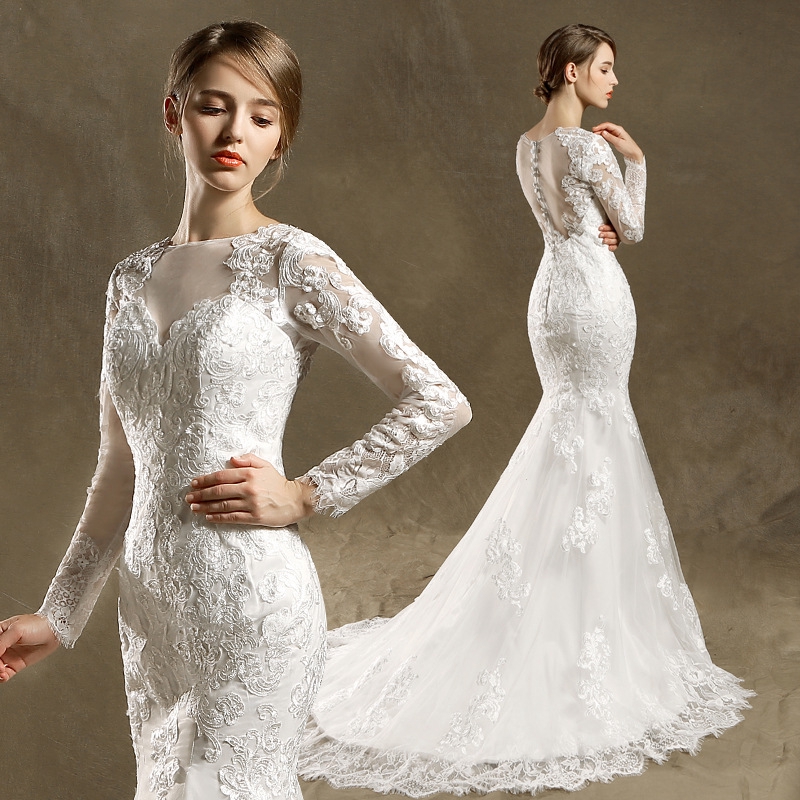 Plain Maxi Fishtail Wholesale Wedding Dress with Ruffle Sleeves