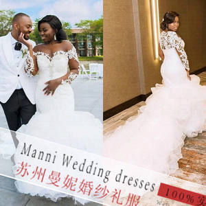 Dubai New Arrival Lace African Plus Size A-line Lace Wedding Dresses Beatu Neck Long Sleeves Wed Dress Wed Bridal Gowns robe de