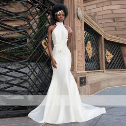 Plain Maxi Fishtail Corset Elopement Wedding Dress with . . .