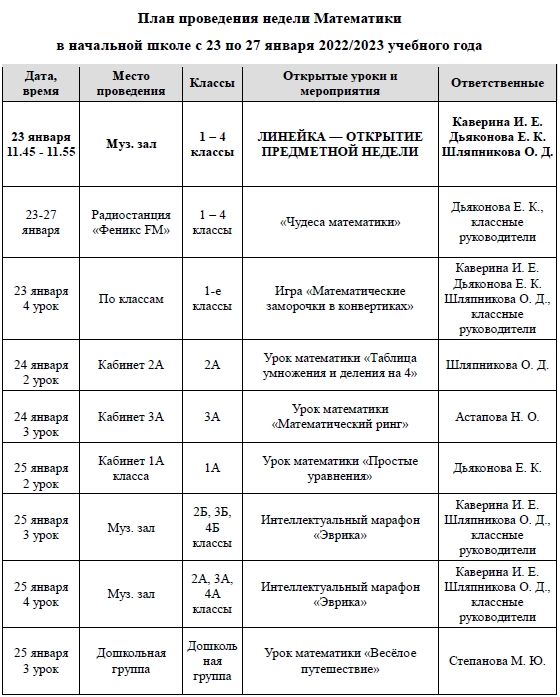 План Недели Фото