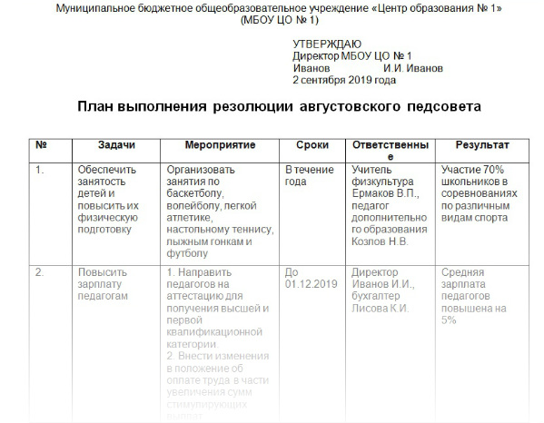 План августовского педсовета