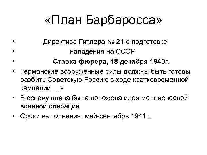 План барбароса кратко